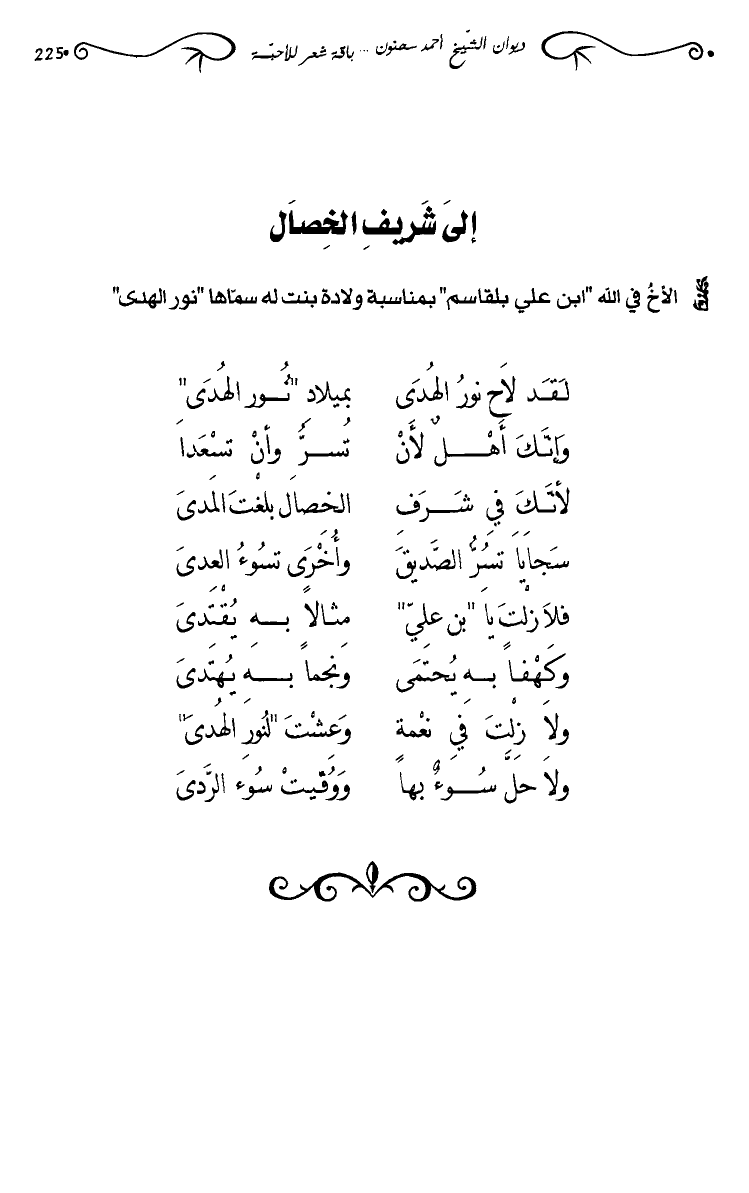 الأخ في الله "ابن علي بلقاسم" بمناسبة ولادة بنت له سماها " نور الهدى".