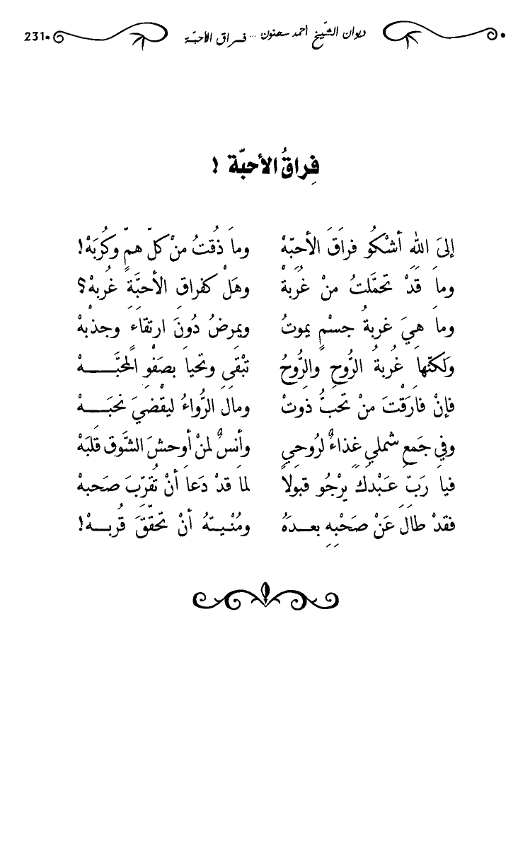 وما قد تحملت من غربة … وهل كفران الأحبة غربه؟