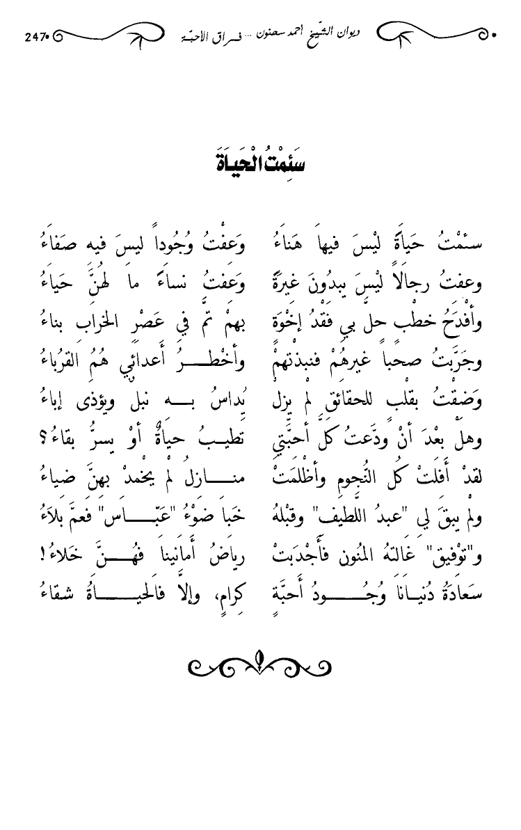 سئمت حياة ليس فيها هناء … وعفت وجودا ليس فيه صفاء