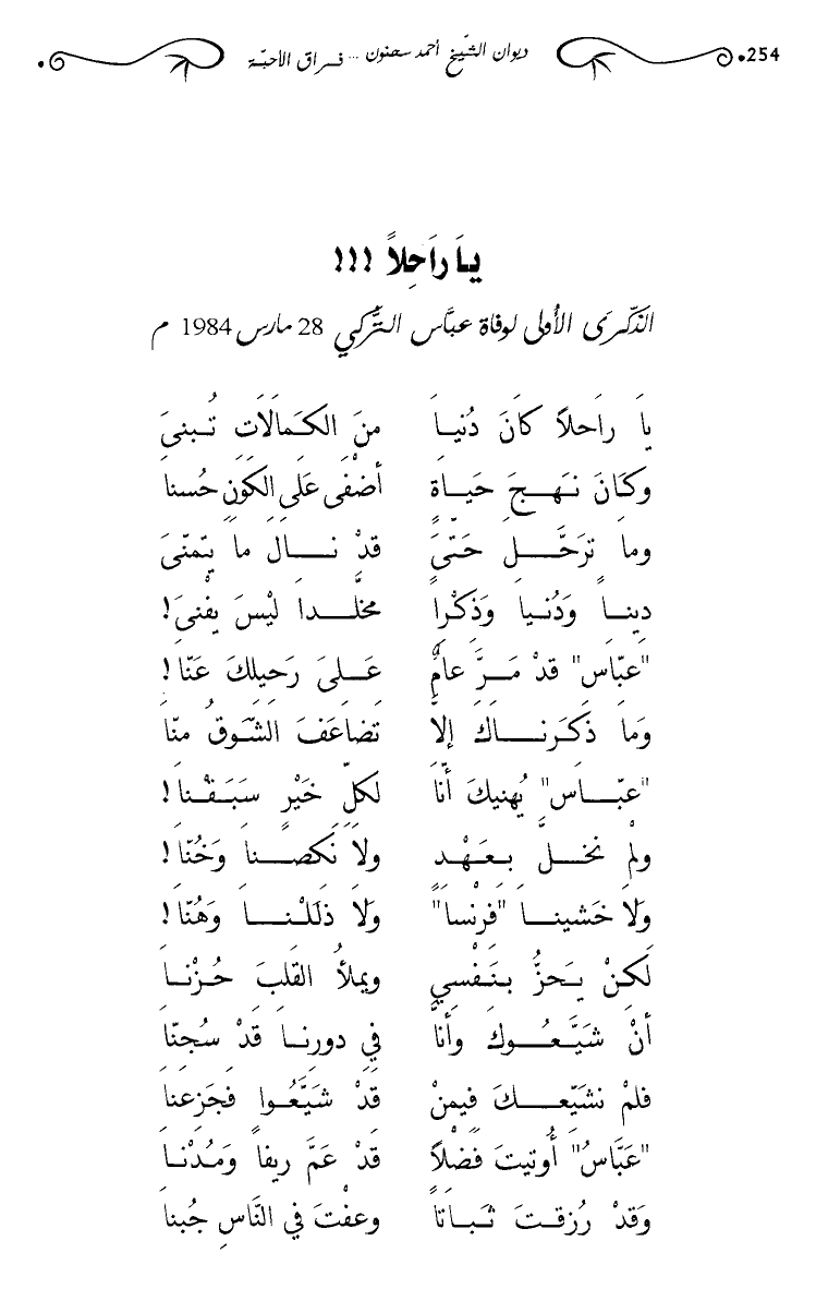 الذكرى الأولى لوفاة عباس التركي 28 مارس 1984م