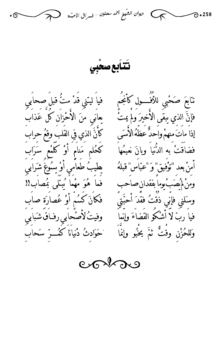 تتابع صحبي للأفول كأنجم … فيا ليتني قد مت قبل صحابي