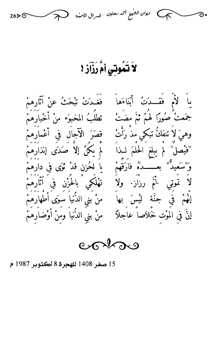 و"سعيد" بعده فارقهم … يا لحزن قد ثوى في دارهم