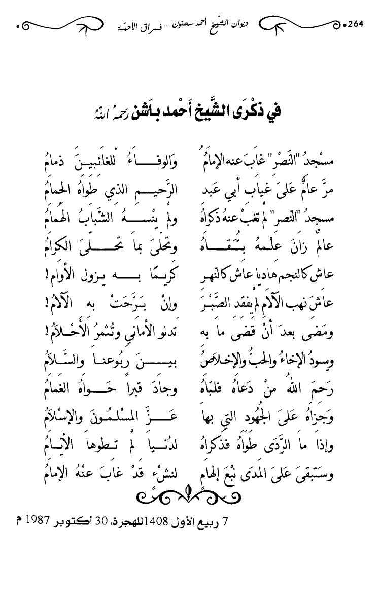 رحم الله من دعا فلباه … وجاد قبرا حواه الغمام