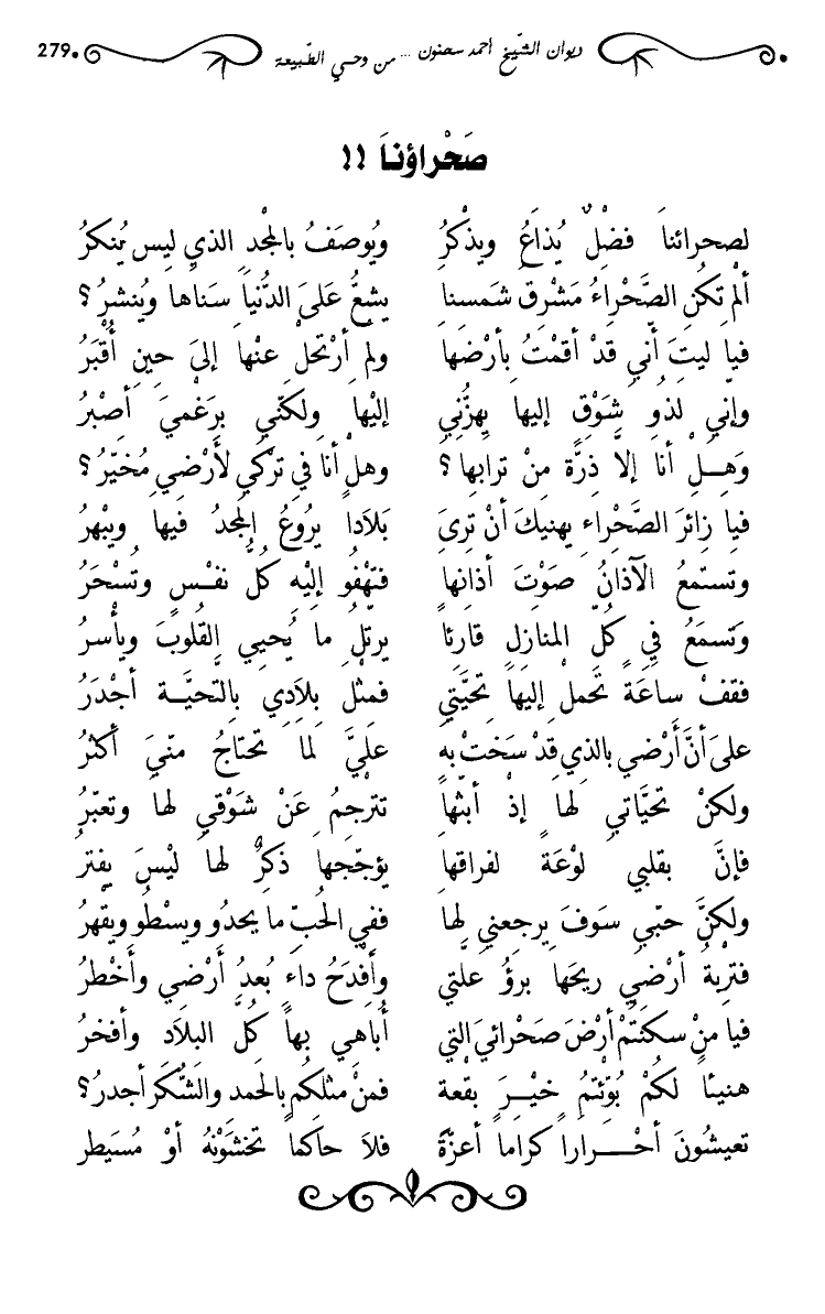 فيا من سكنتم أرض صحرائي التي … أباهي بها كل البلاد وأفخر
