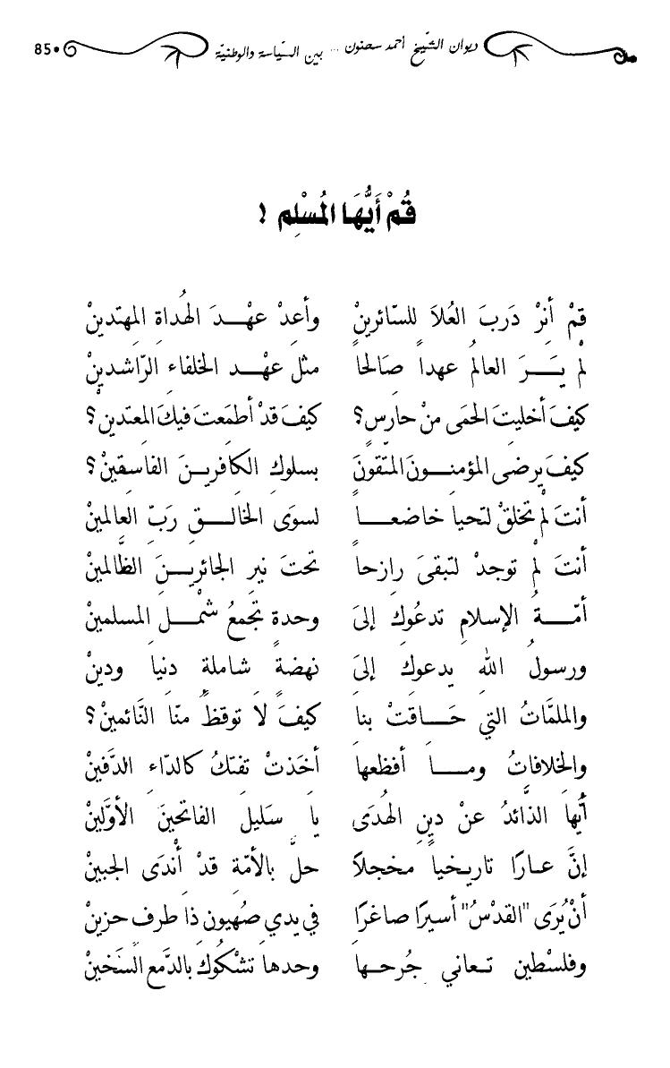 أيها الذائد عن دين الهدى … يا سليل الفاتحين الأولين