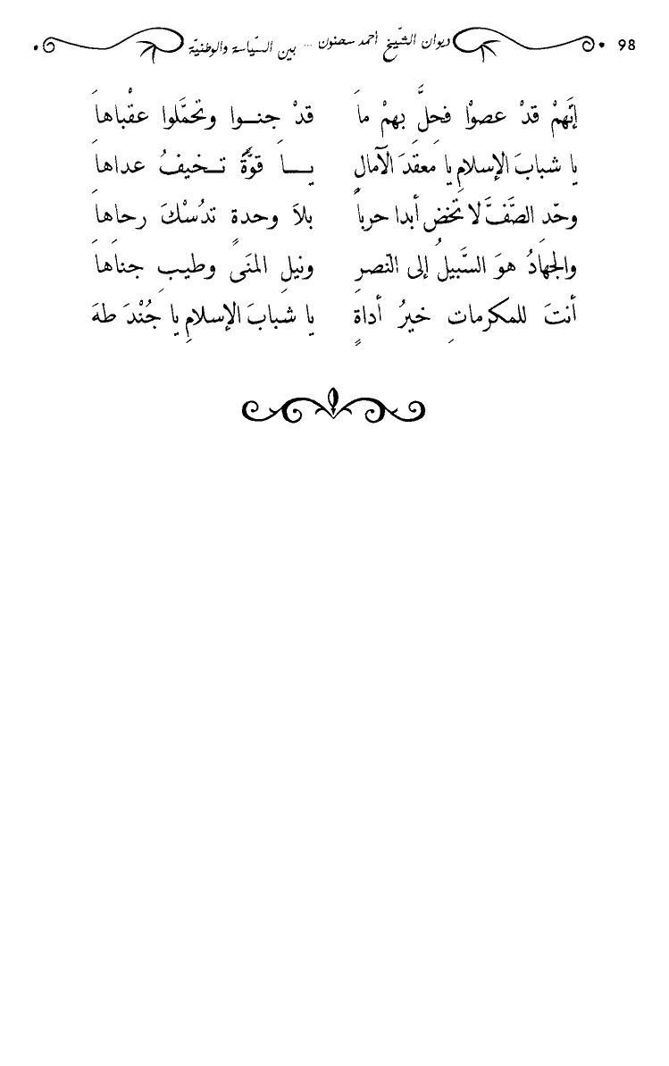 يا شباب الإسلام يا معقد الآمال … يا قوة تخيف عداها