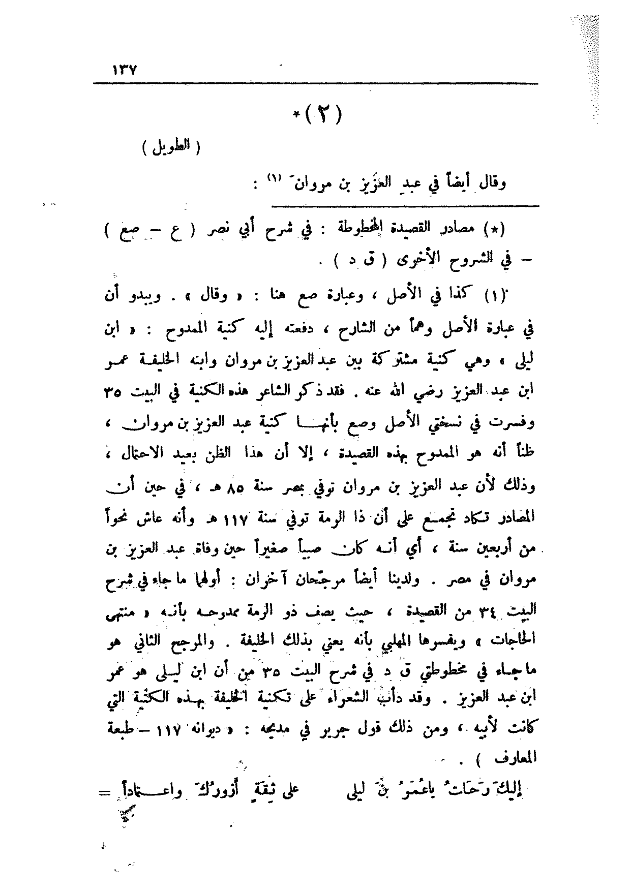 وقال أيضاً في عبد العزيز بن مروان: