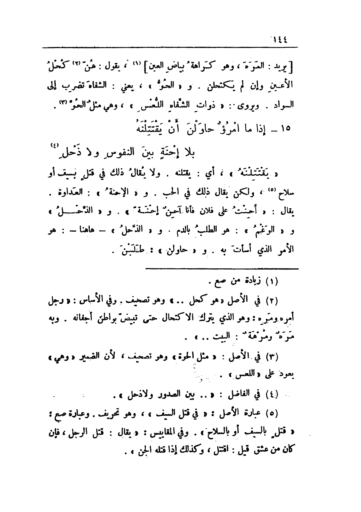 15 - إذا ما امرؤٌ حاولن أن يقتتلنه ... بلا إحنةٍ بين النفوس ولا ذحل