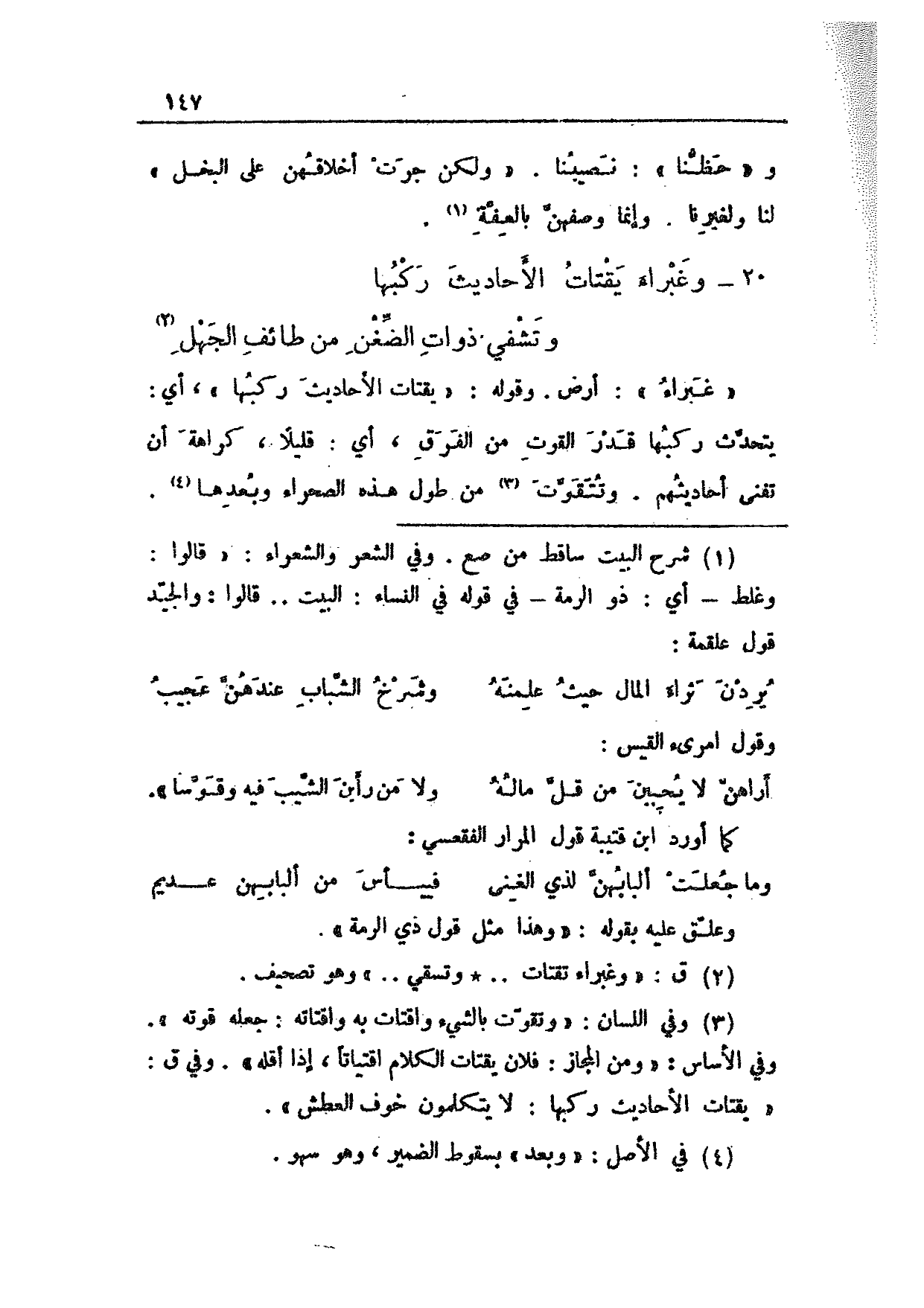 20 - وغبراء يقتات الأحاديث ركبها ... وتشفي ذوات الضغن من طائف الجهل