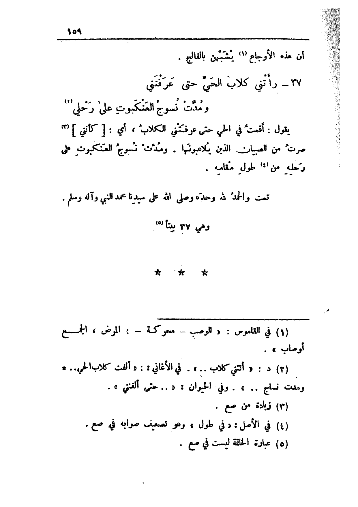 37 - رأتني كلاب الحي حتى عرفنني ... ومدت نسوج العنكبوت على رحلي
