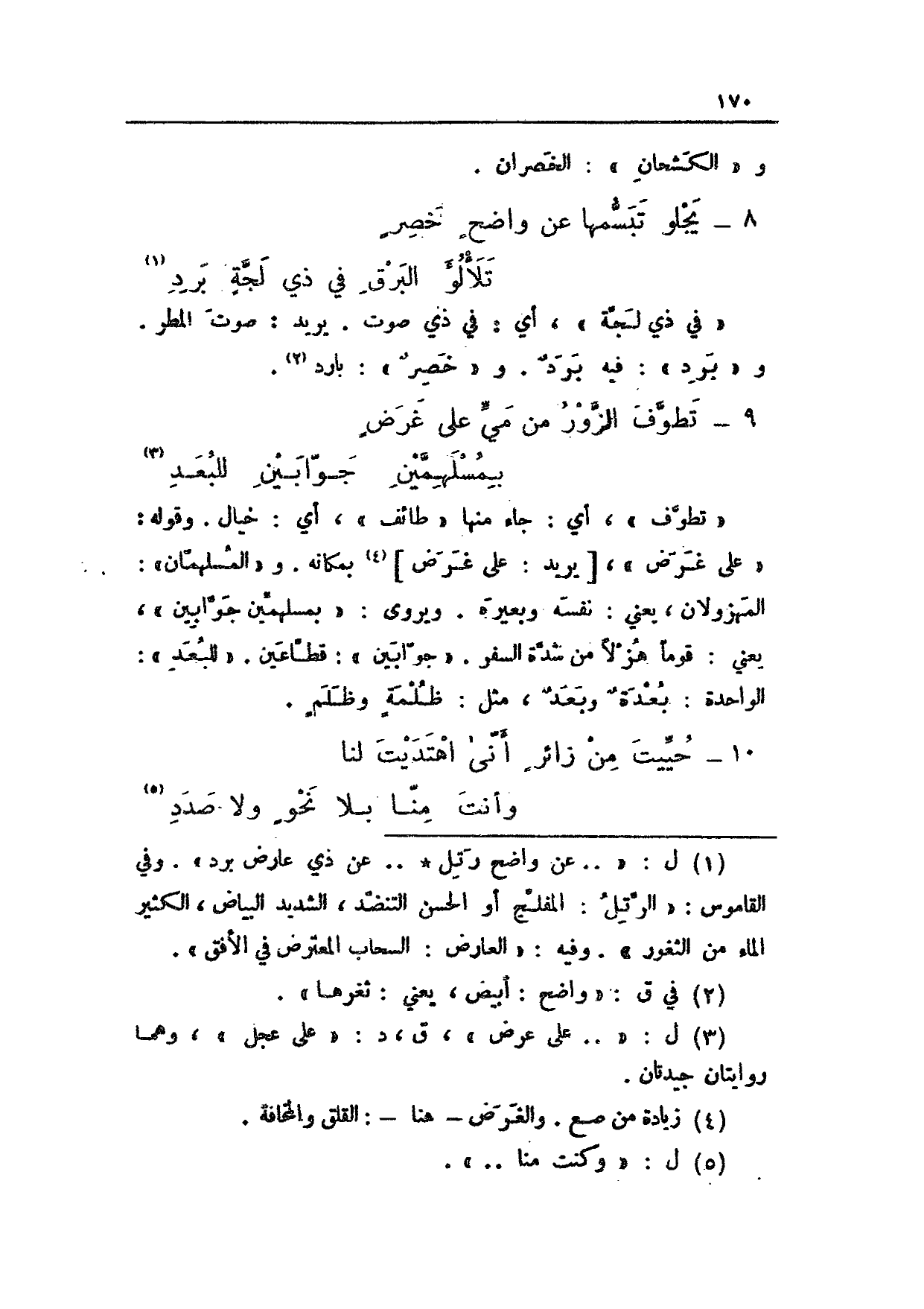 "تطوف"، أي: جاء منها "طائف"، أي: خيال. وقوله: "على غرض"، [يريد: على غرض] بمكانه. و"المسلهمان": المهزولان، يعني: نفسه وبعيره. ويروى: "بمسلهمين جوابين"، يعني: قوماً هزلاً من شدة السفر. "جوابين": قطاعين. "للبعد": الواحدة: بعدةٌ وبعدٌ، مثل: ظلمةٍ وظلمٍ.