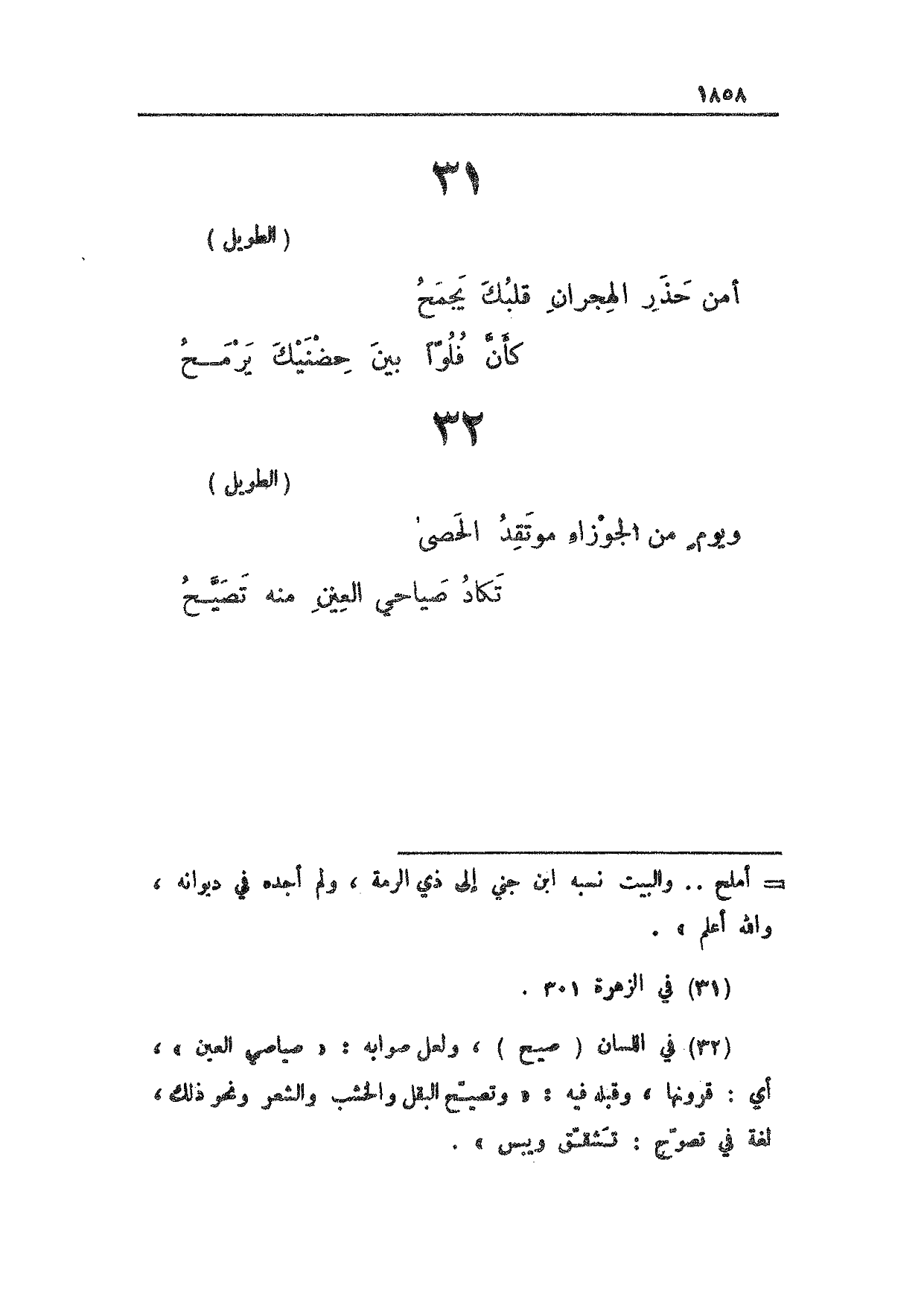 أمن حذر الهجران قلبك يجمح ... كأن فلوا بين حضنيك يرمح