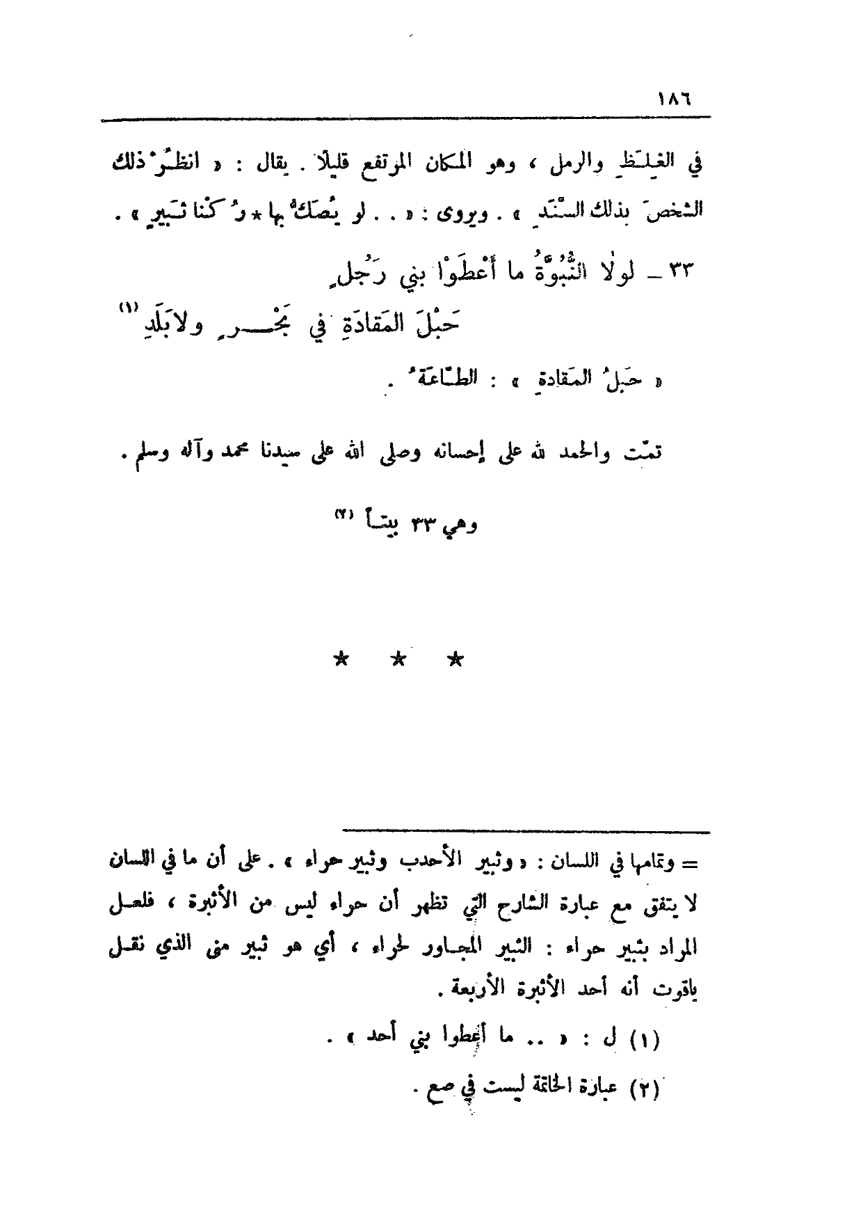 33 - لولا النبوة ما أعطوا بني رجلٍ ... حبل المقادة في بحرٍ ولا بلد