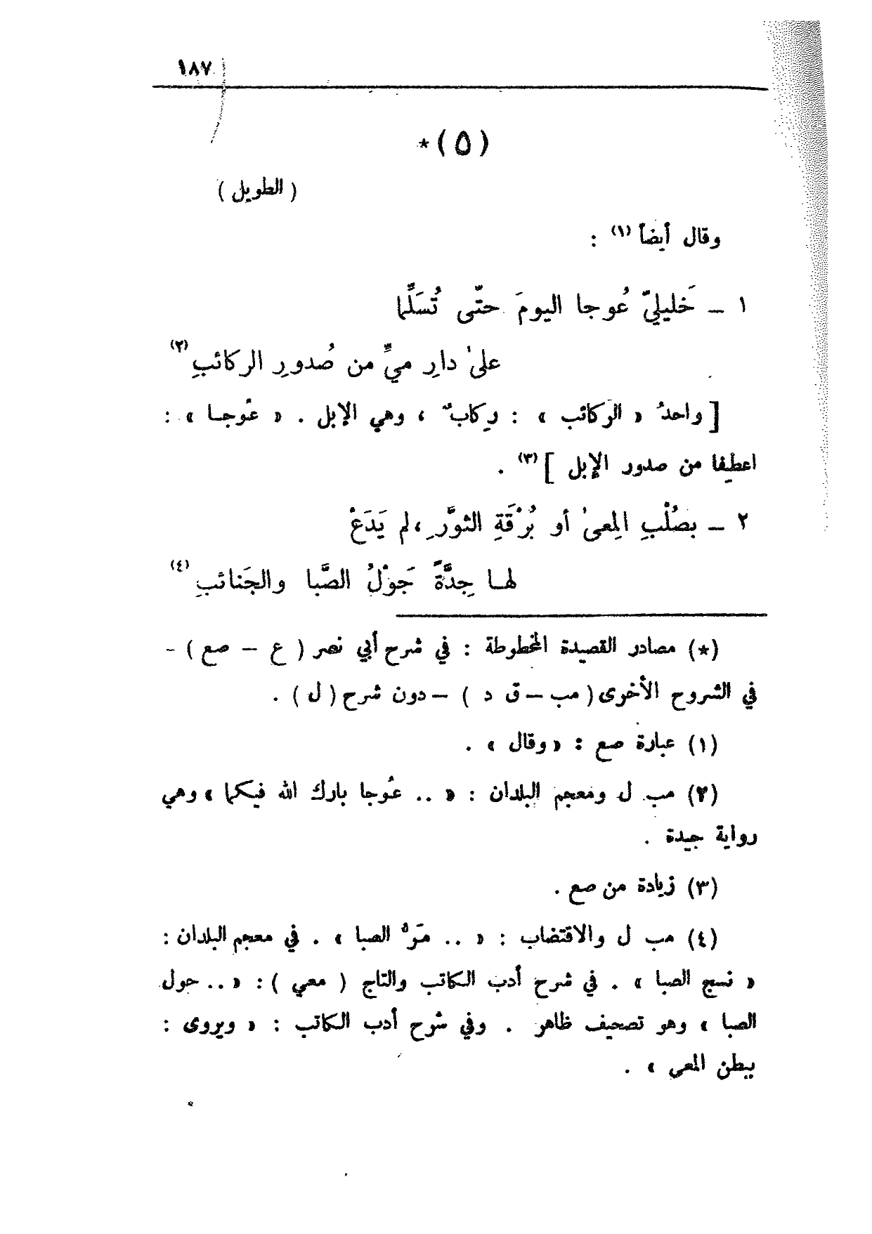 [واحد "الركائب": ركابٌ، وهي الإبل. "عوجا": اعطفا من صدور الإبل].