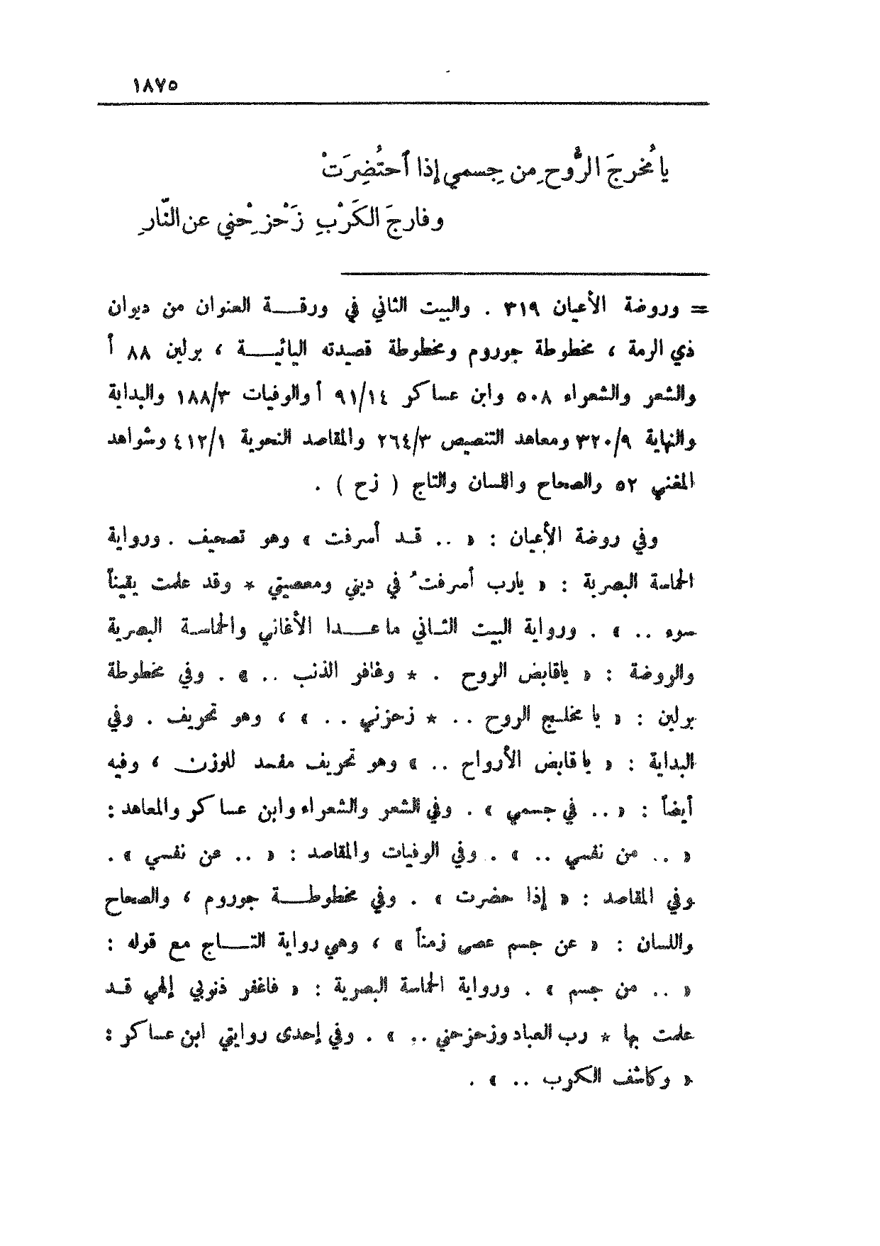 يا مخرج الروح من جسمي إذا احتضرت ... وفارج الكرب زحزحني عن النار