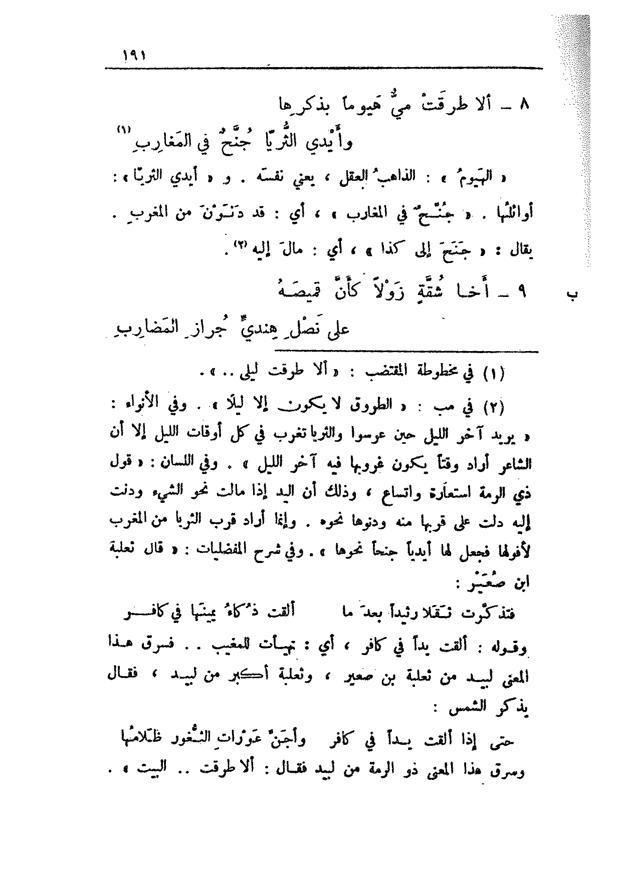 8 - ألا طرقت ميٌّ هيوماً بذكرها ... وأيدي الثريا جنحٌ في المغارب