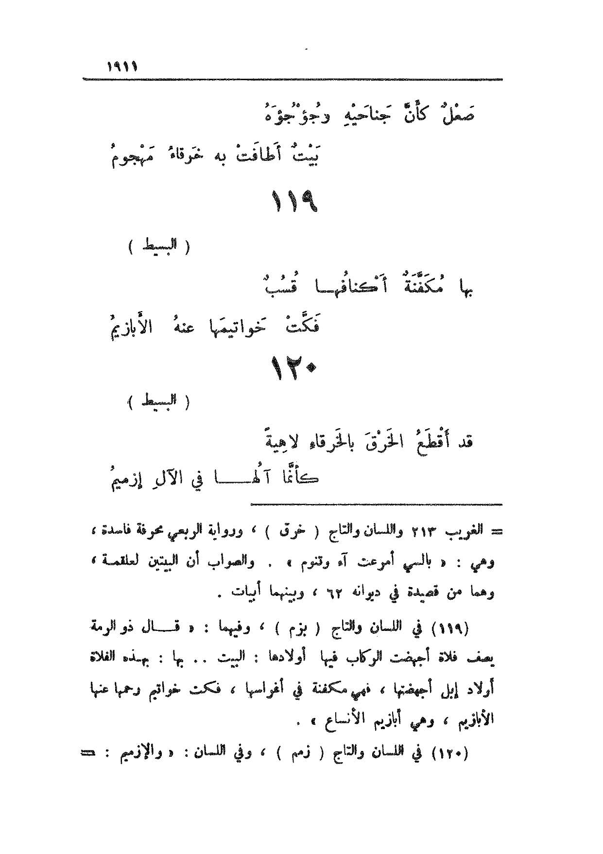 صعل كأن جناحيه رجؤجؤه ... بيت أطافت به خرقاء مهجوم