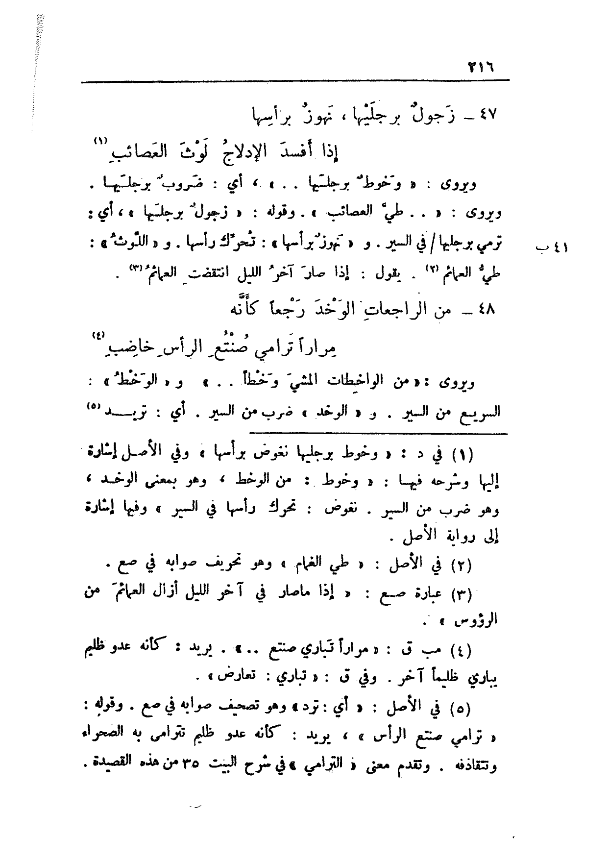 47 - زجولٌ برجليها، نهوزٌ برأسها ... إذا أفسد الإدلاج لوث العصائب