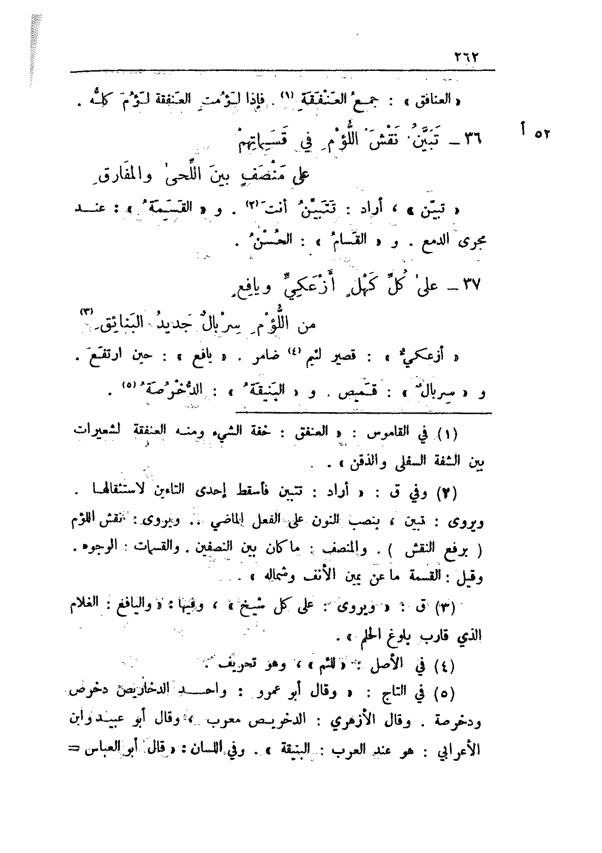 52 أ 36 - تبين نقش اللؤم في قسماتهم ... على منصفٍ بين اللحى والمفارق