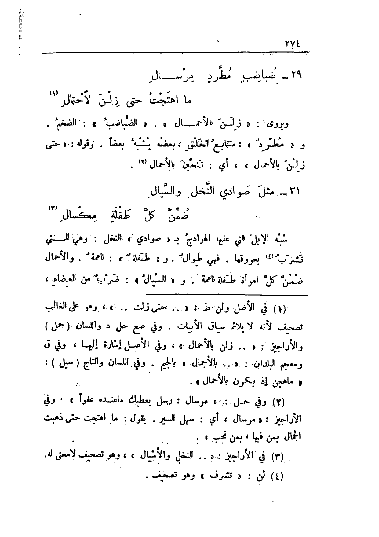 شبه الإبل التي عليها الهوادج بـ"صوادي" النخل: وهي التي تشرب بعروقها. فهي طوالٌ. و"طفلةٌ": ناعمةٌ. والأحمال ضمن كل امرأة طفلة ناعمة. و"السيال": ضربٌ من العضاه،