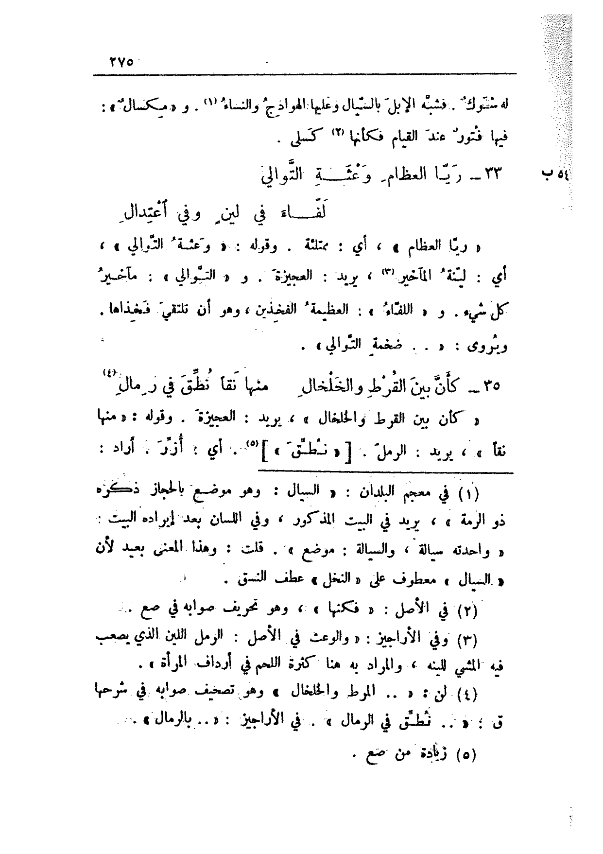 35 - كأن بين القرط والخلخال ... منها نقاً نطق في رمال