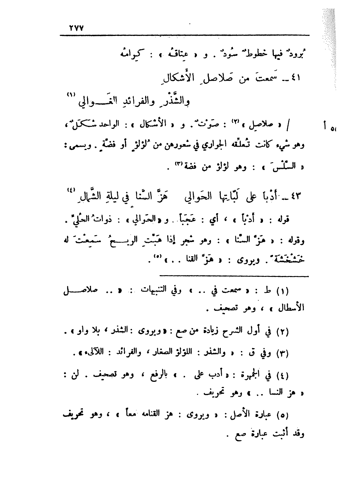 55 أ/ "صلاصل": صوتٌ. و"الأشكال": الواحد شكلٌ، وهو شيء كانت تعلقه الجواري في شعورهن من لؤلؤٍ أو فضةٍ. ويسمى: "السلس": وهو لؤلؤ من فضة.