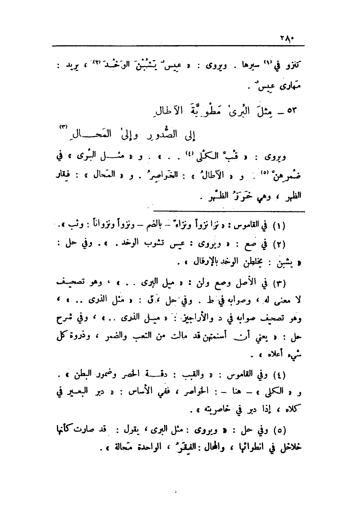 53 - مثل البرى مطوية الآطال ... إلى الصدور وإلى المحال