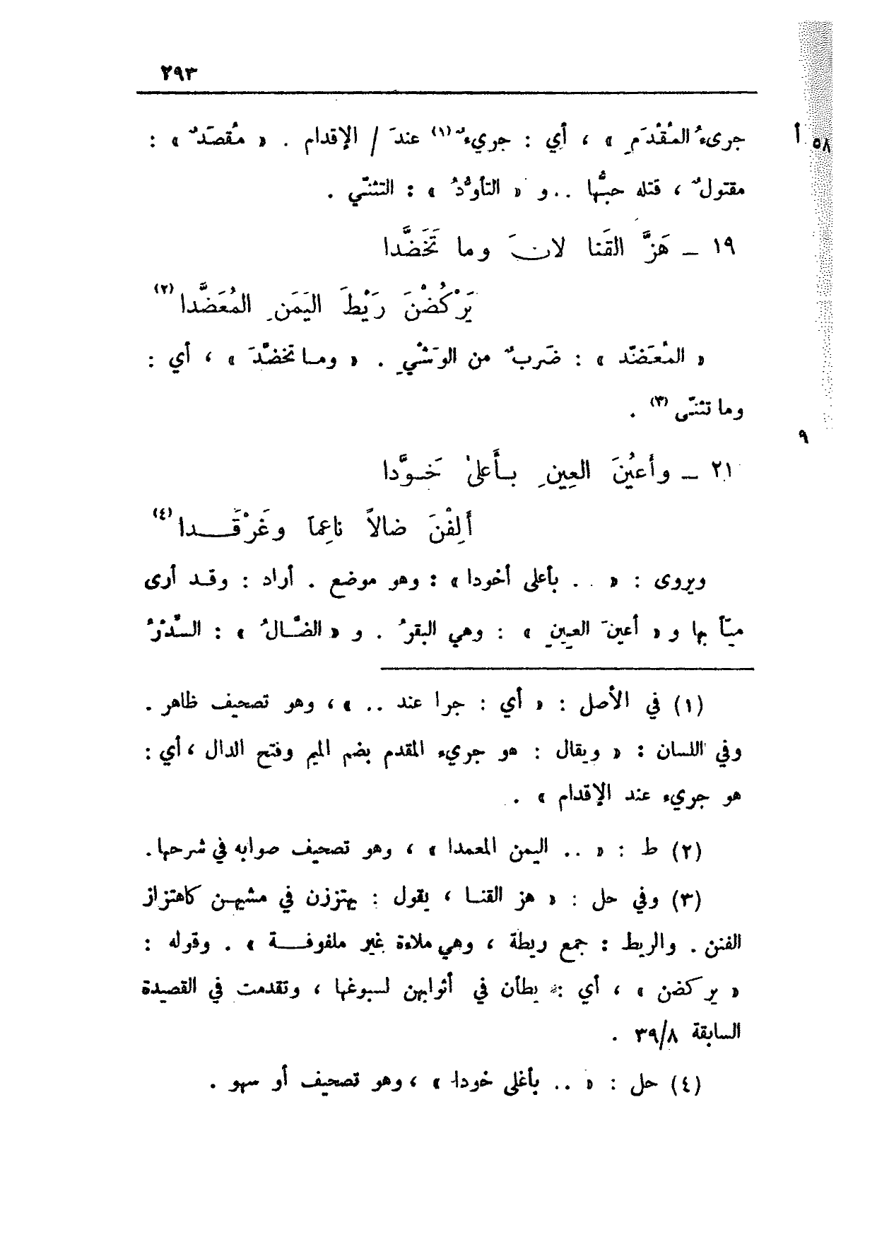 19 - هز القنا لأن وما تخضدا ... يركضن ريط اليمن المعضدا