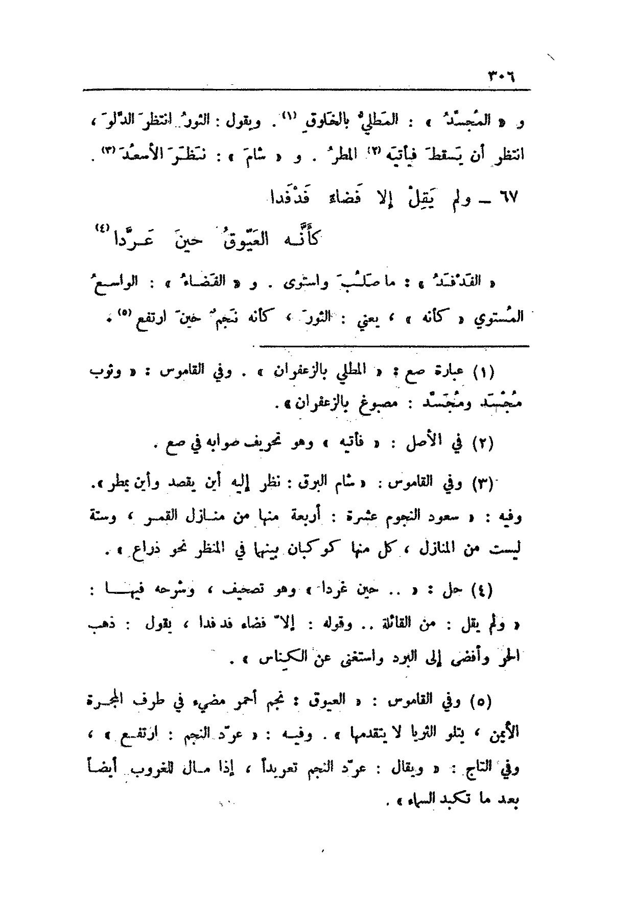 67 - ولم يقل إلا فضاءً فدفدا ... كأنه العيوق حين عردا