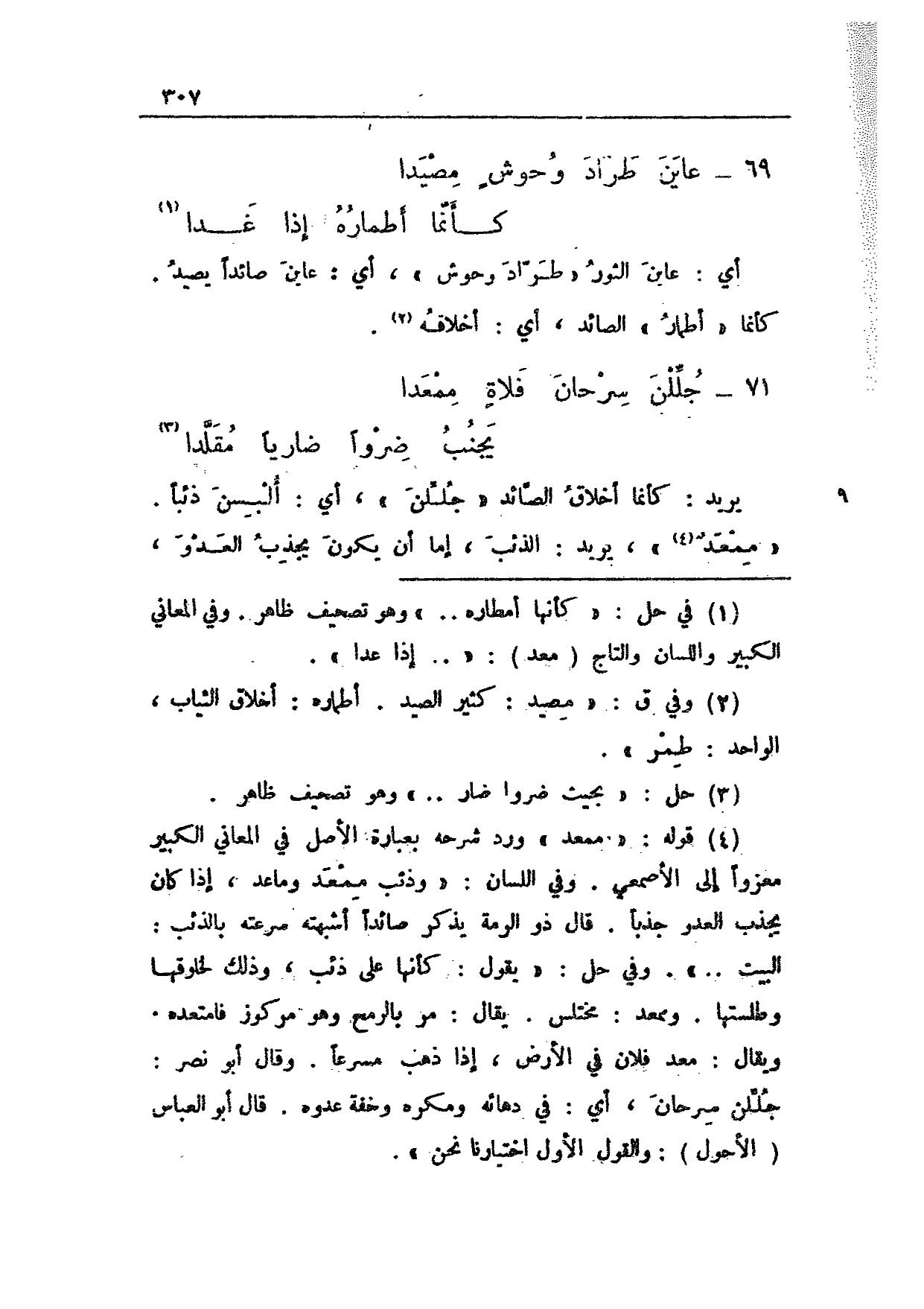 69 - عاين طراد وحوشٍ مصيدا ... كأنما أطماره إذا غدا