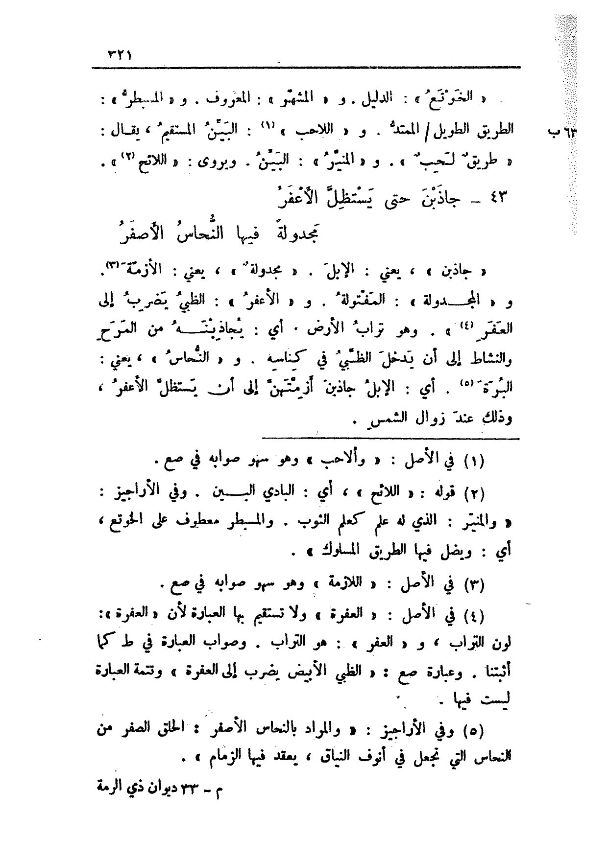 "الخوتع": الدليل. و"المشهر": المعروف. و"المسبطر": الطريق الطويل 63 ب/ الممتد. و"اللاحب": البين المستقيم، يقال: "طريقٌ لحبٌ". و"المنير": البين. ويروى: "اللائح".