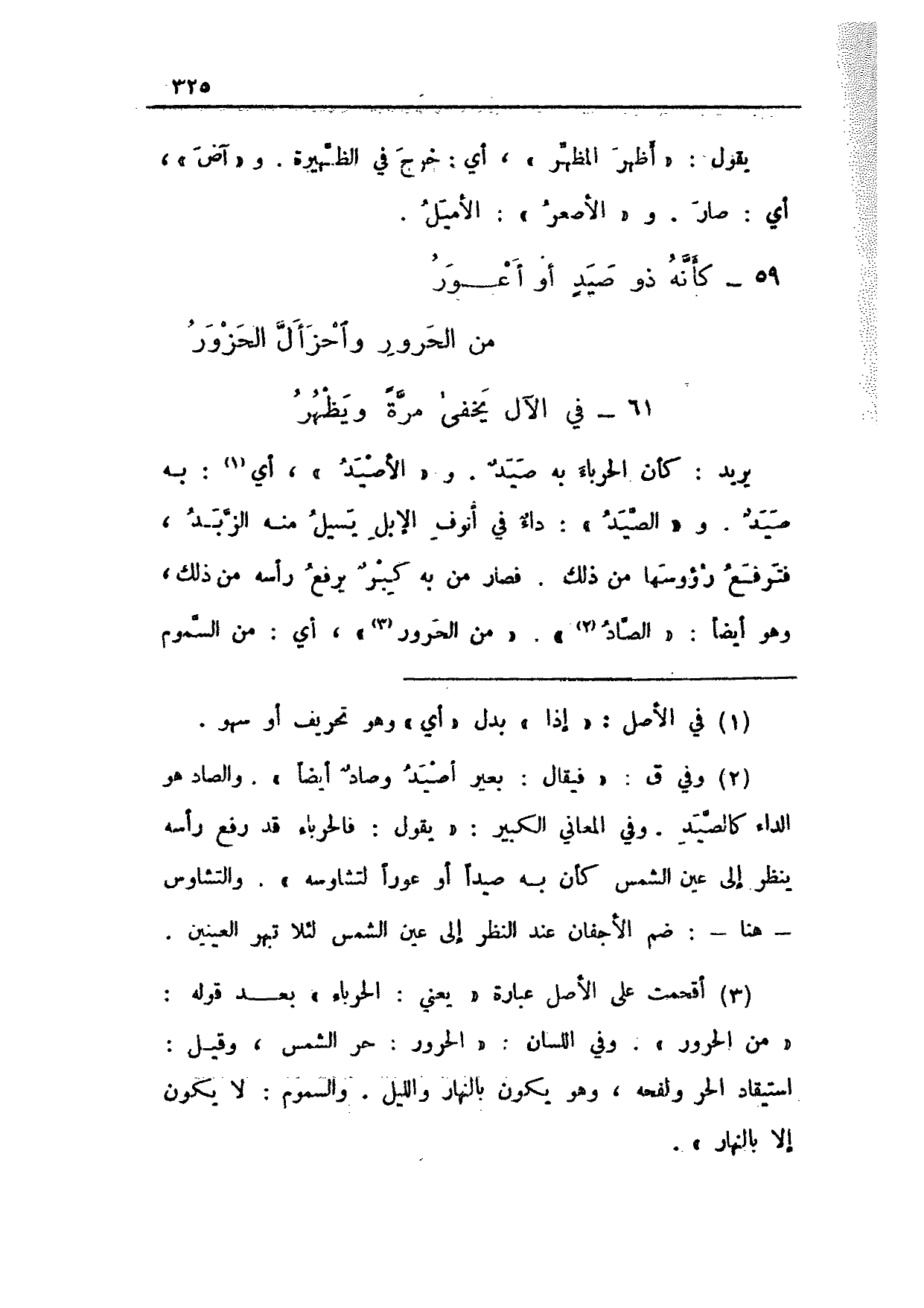 59 - كأنه ذو صيدٍ أو أعور ... من الحرور واحزأل الحزور
