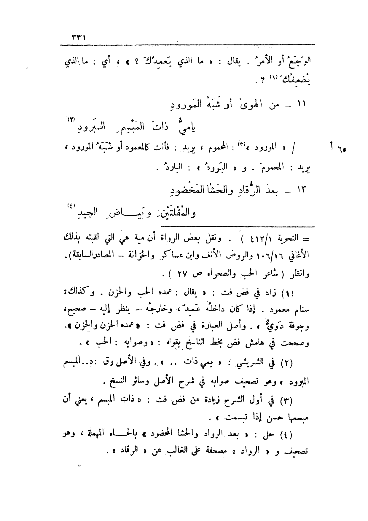 65 أ/ "المورود": المحموم، يريد: فأنت كالمعمود أو شبه المورود، يريد: المحمود. و"البرود": البارد.