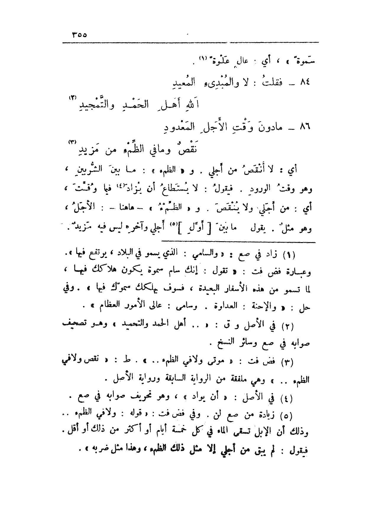 86 - ما دون وقت الأجل المعدود ... نقصٌ وما في الظمء من مزيد
