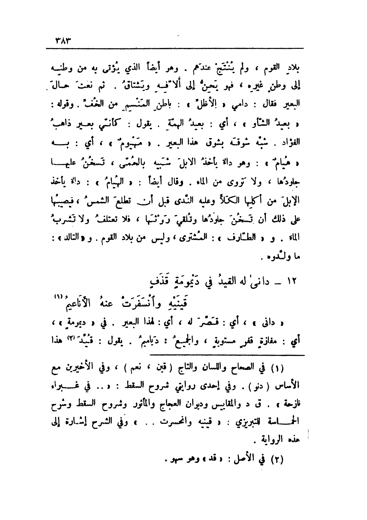 12 - دانى له القيد في ديمومةٍ قذفٍ ... قينيه وانسفرت عنه الأناعيم