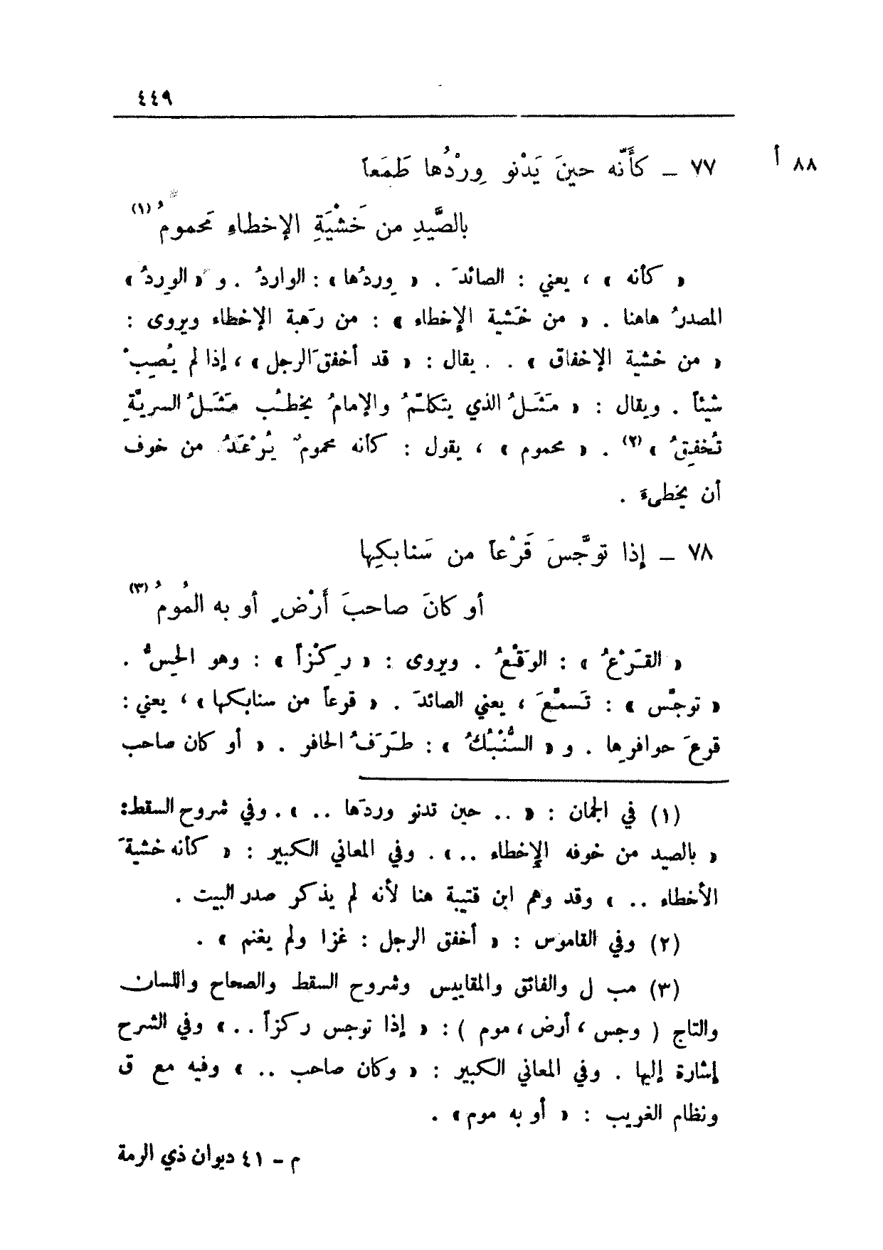 88 أ 77 - كأنه حين يدنو وردها طمعاً ... بالصيد من خشية الإخطاء محموم