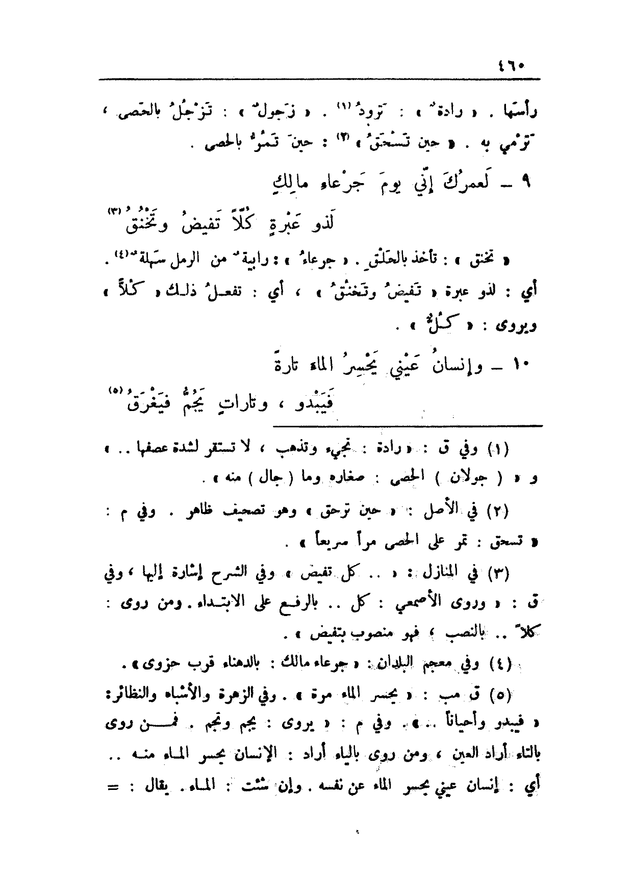 9 - لعمرك إني يوم جرعاء مالكٍ ... لذو عبرةٍ كلاً تفيض وتخنق