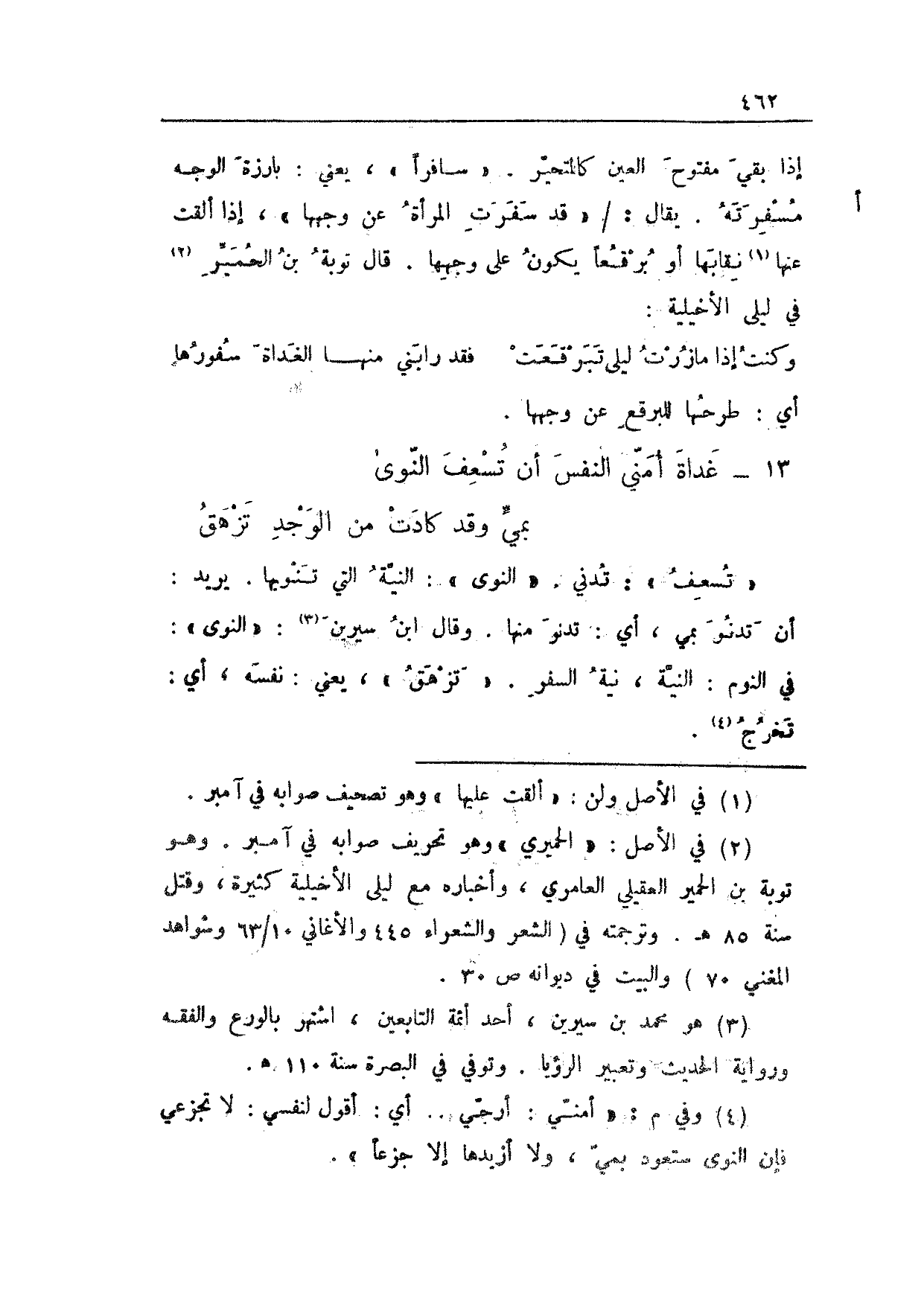 إذا بقي مفتوح العين كالمتحير. "سافراً"، يعني: بارزة الوجه مسفرته. يقال: 9 أ/ "قد سفرت المرأة عن وجهها"، إذا ألقت عنها نقابها أو برقعاً يكون على وجهها. قال توبة بن الحمير في ليلى الأخيلية: