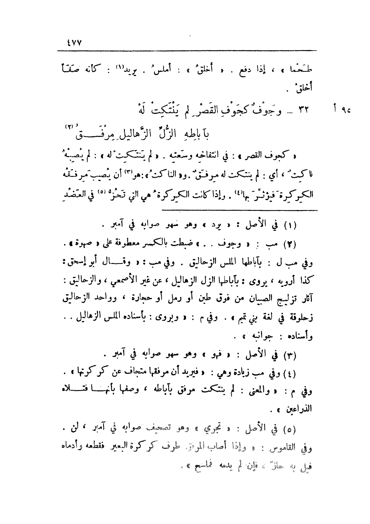 95 أ 32 - وجوفٌ كجوف القصر لم ينتكت له ... بآباطه الزل الزهاليل مرفق