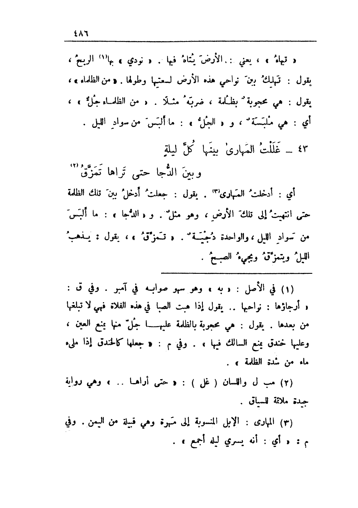43 - غللت المهارى بينها كل ليلةٍ ... وبين الدجا حتى تراها تمزق