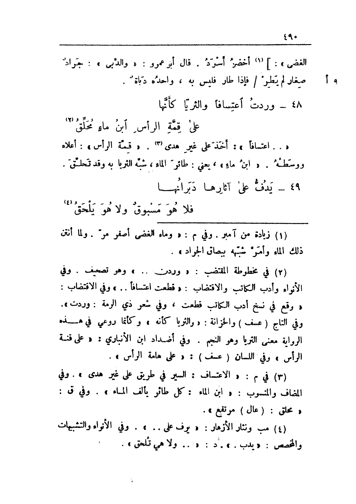 48 - وردت اعتسافاً والثريا كأنها ... على قمة الرأس ابن ماءٍ محلق