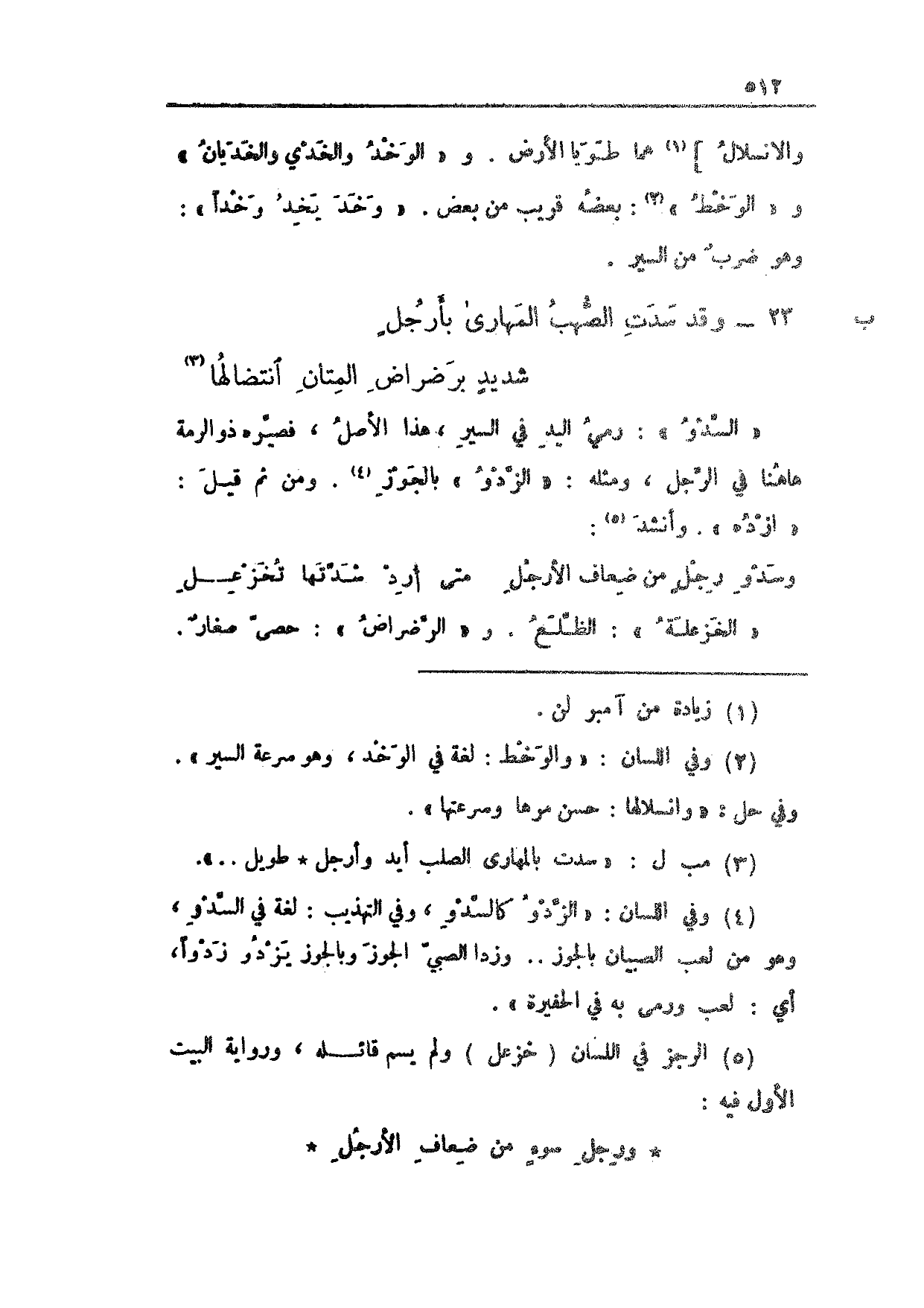 "السدو": رمي اليد في السير، هذا الأصل، فصيره ذو الرمة هاهنا في الرجل، ومثله: "الزدو" بالجور. ومن ثم قيل: "ازده". وأنشد: