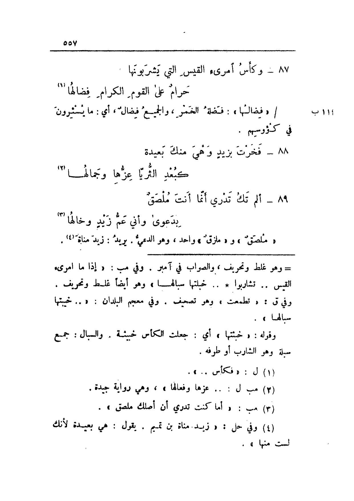 87 - وكأس امريء القيس التي يشربونها ... حرامٌ على القوم الكرام فضالها