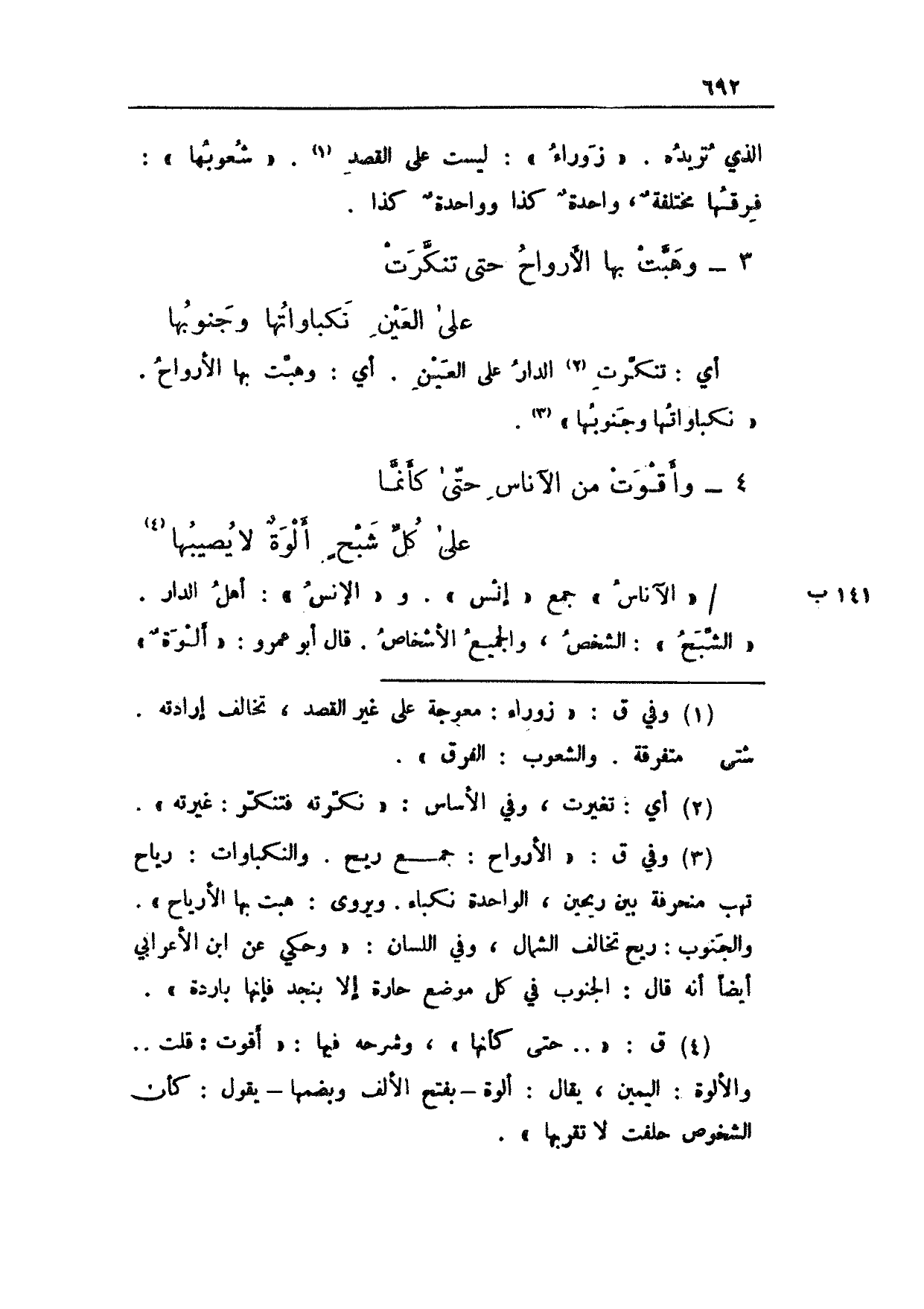 141 ب/ "الآناس" جمع "إنس". و"الإنس": أهل الدار. "الشبح": الشخص، والجميع الأشخاص. قال أبو عمرو: "ألوة"