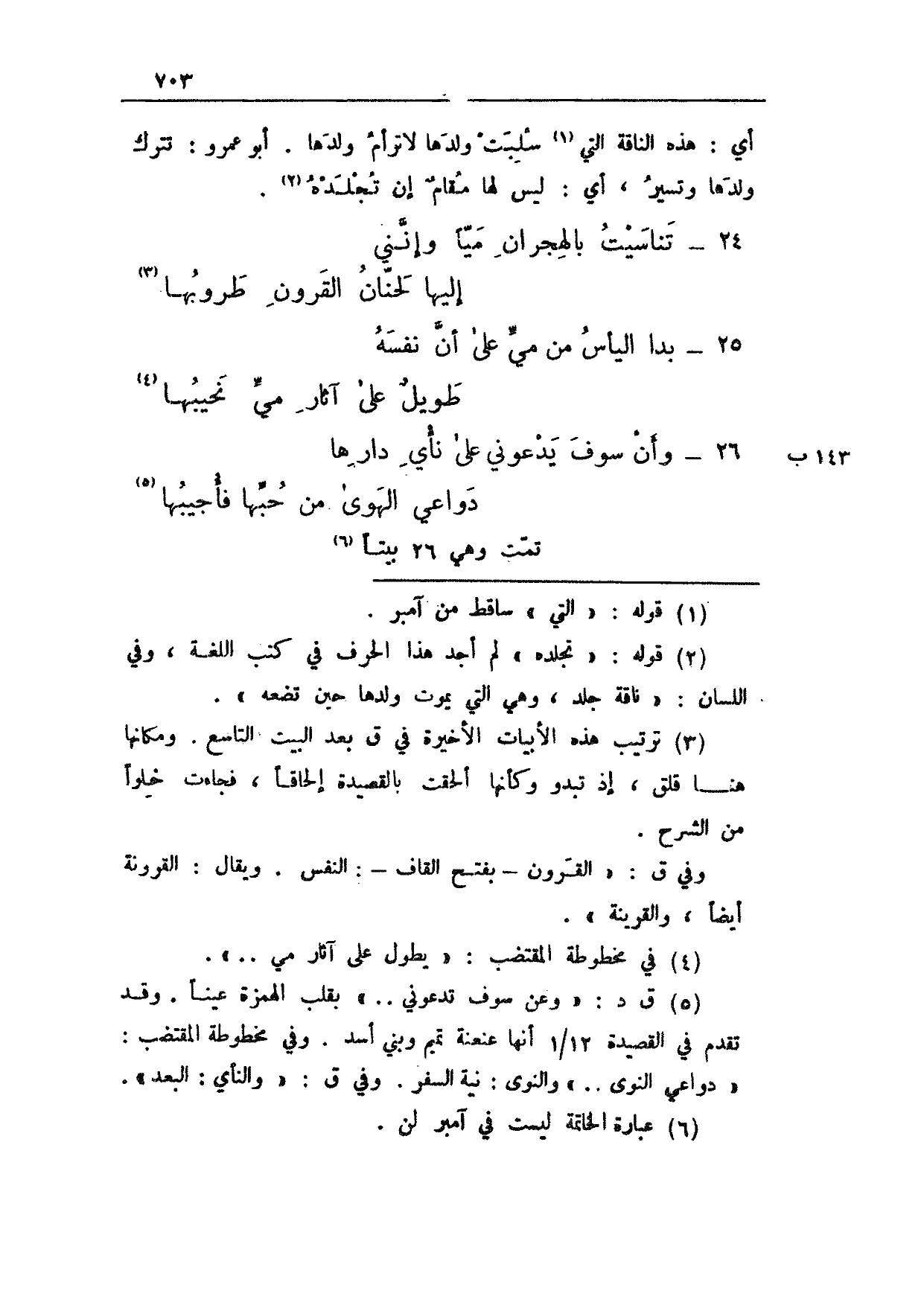 143 ب 26 - وأن سوف يدعوني على نأي دارها ... دواعي الهوى من حبها فأجيبها