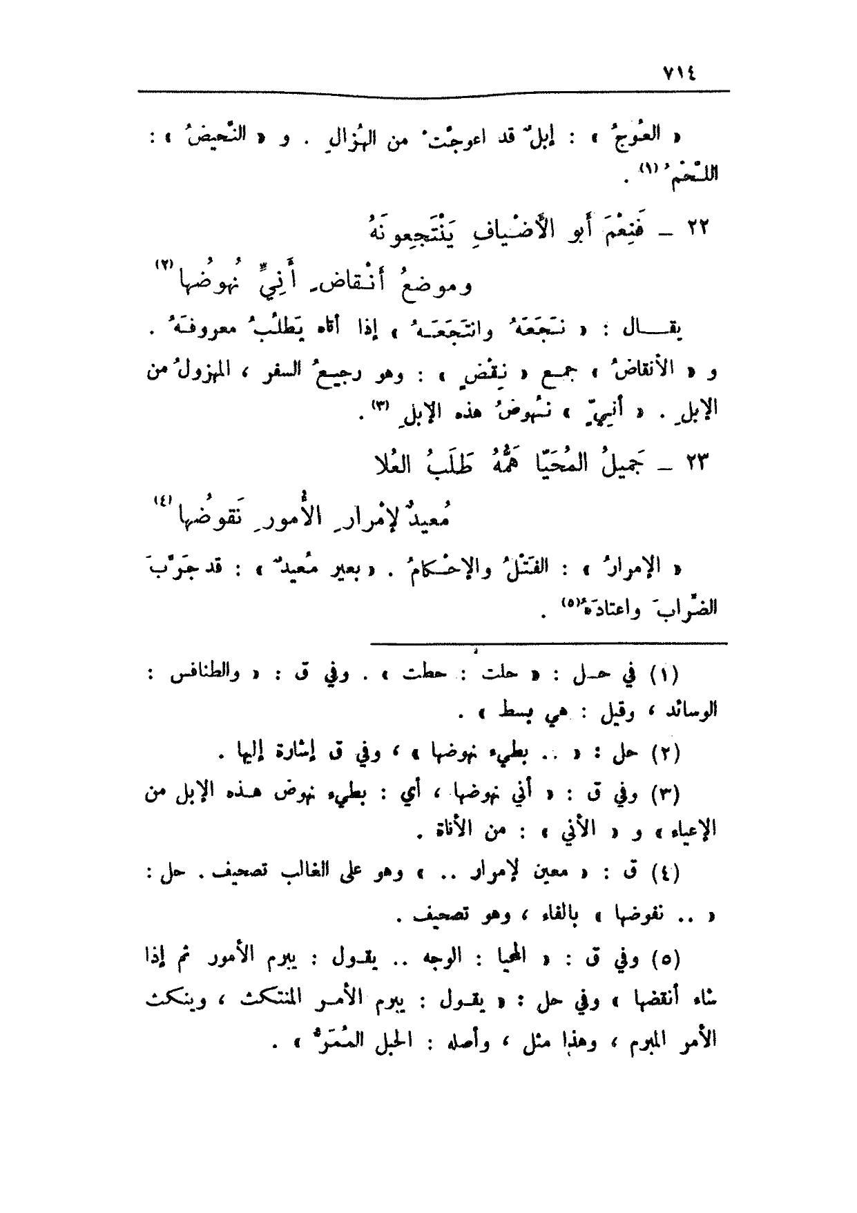 "العوج": إبل قد اعوجت من الهزال. و"النحيض": اللحم.