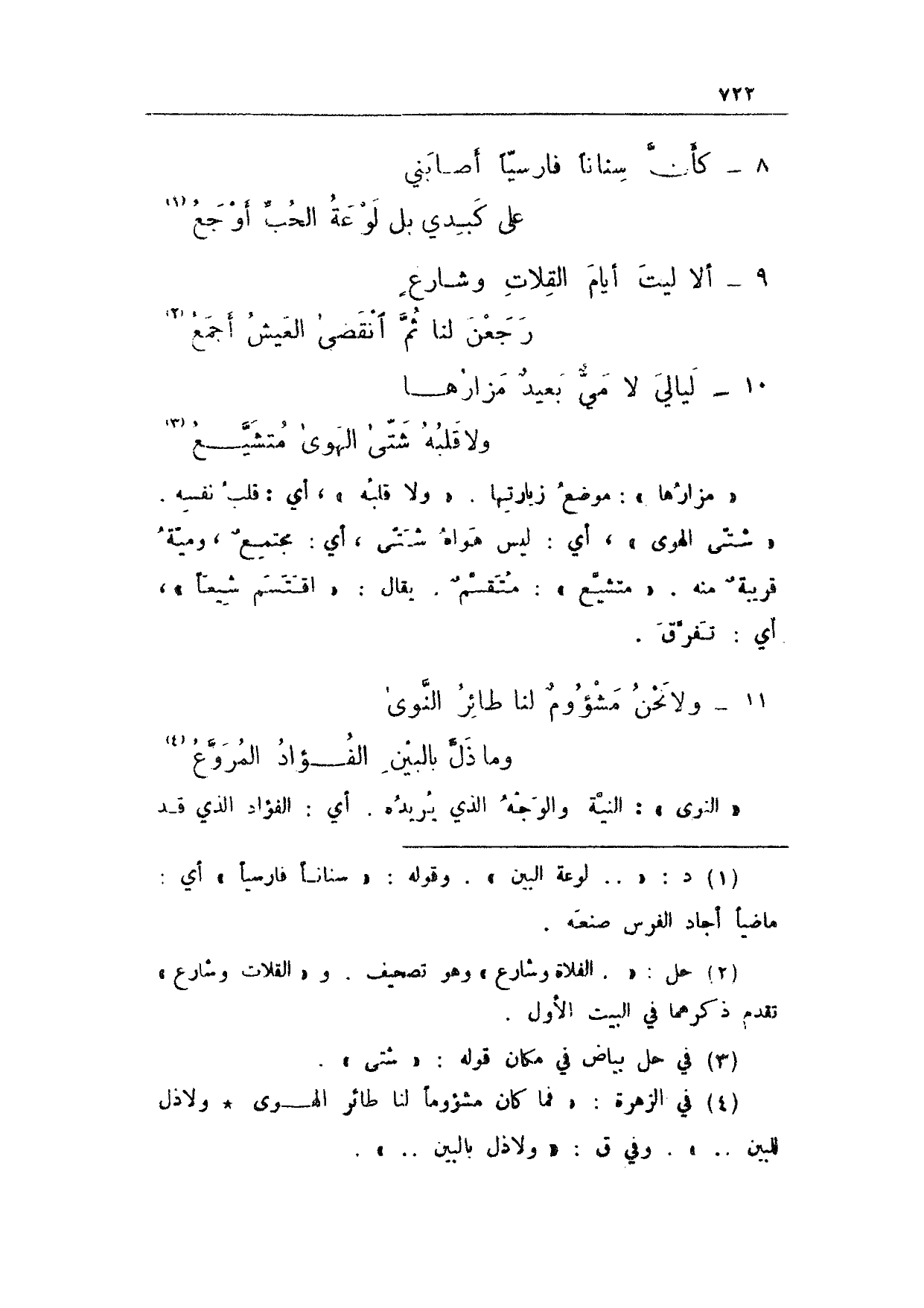 8 - كأن سناناً فارسياً أصابني ... على كبدي بل لوعة الحب أوجع