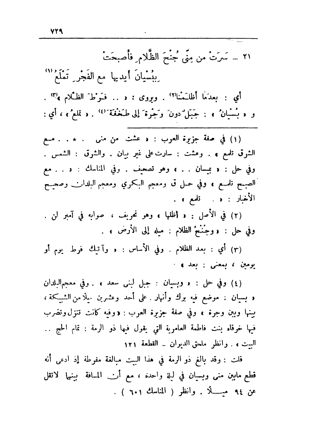 21 - سرت من منى جنح الظلام فأصبحت ... يبسيان أيديها مع الفجر تملع
