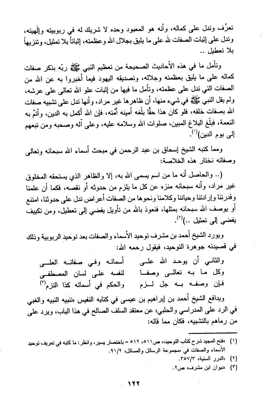 1 "فتح المجيد شرح كتاب التوحيد"، ص511، 512 باختصار يسير، وانظر: ما كتبه في تعريف توحيد الأسماء والصفات في "مجموعة الرسائل والمسائل" 2/91.