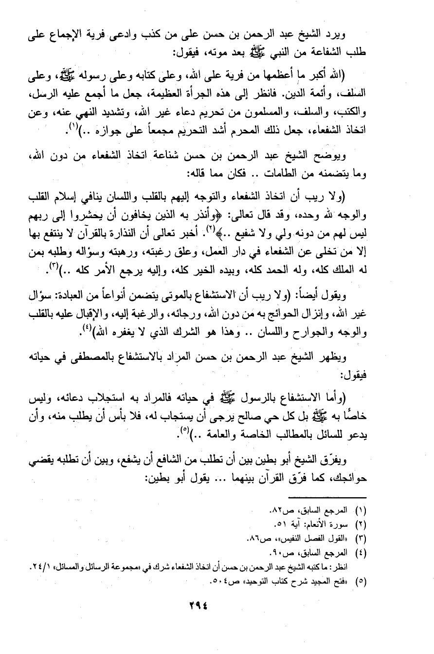 5 "فتح المجيد شرح كتاب التوحيد" ص 504.
